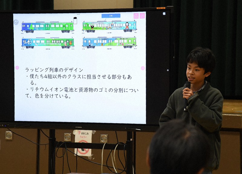 ごみ分別ラッピング列車、児童がデザイン 電池混入の処理場火災で